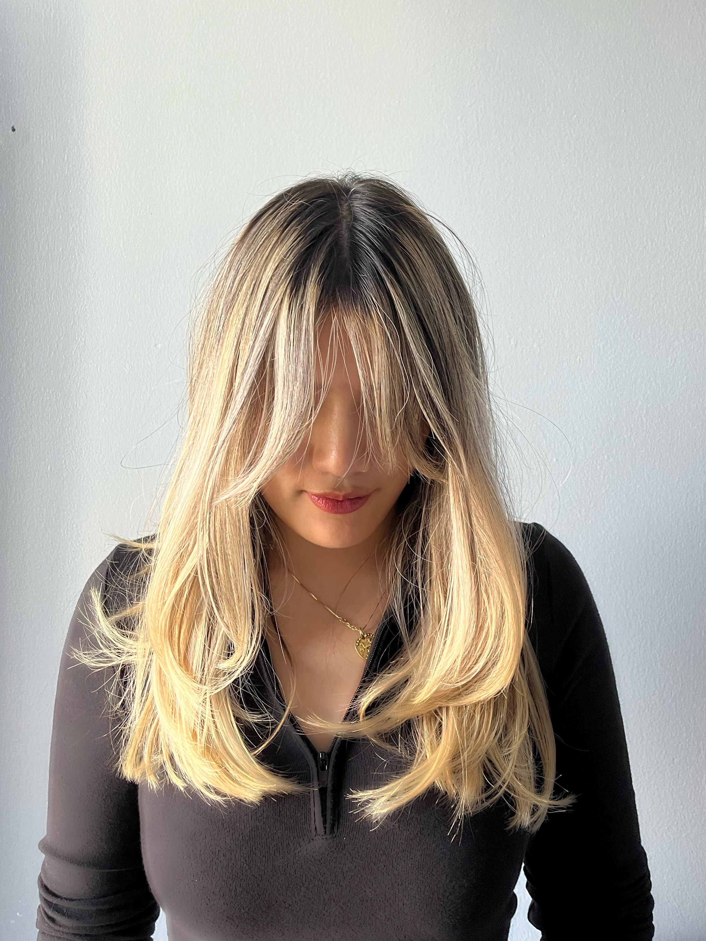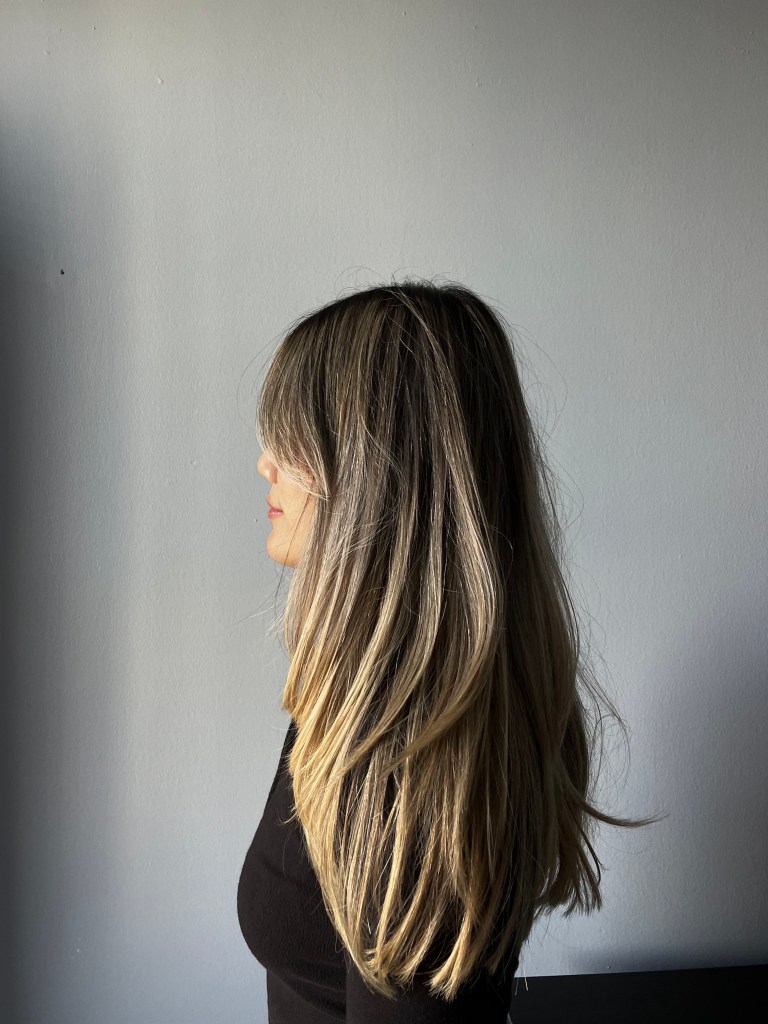 - Long Layers: Opt for long layers to maintain volume in your hair. These layers add texture and movement while preventing your hair from looking flat. You can also ask for shorter wispy layers around the chin to frame your face. I did not want too many layers as it can take away some volume at the bottom as I generally have thin hair.